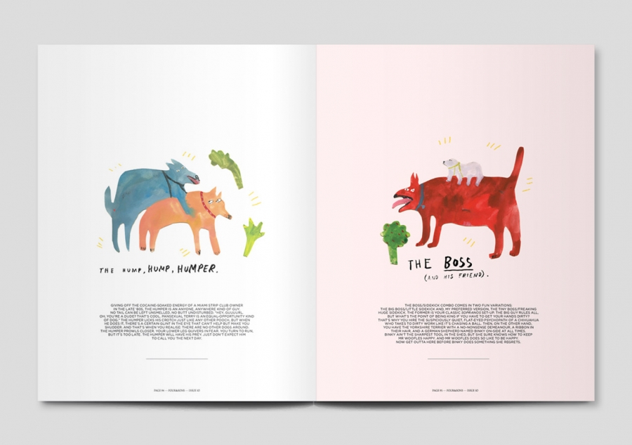 To celebrate their tenth issue, Four & Sons teams up with a host of contributors who champion the joy and offbeat energy that comes from being inspired by four-legged friends — including David Shrigley, Julia Christe, Martin Usborne, Bruce Weber and Andrew Knapp.