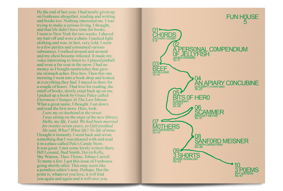 Funhouse is an illustrated literary magazine with a focus on bodies. Characterised by an odd sense of humour, it has poetry, short stories and comics that look straight into the face of sweaty, rude, and utterly unfiltered human forms.