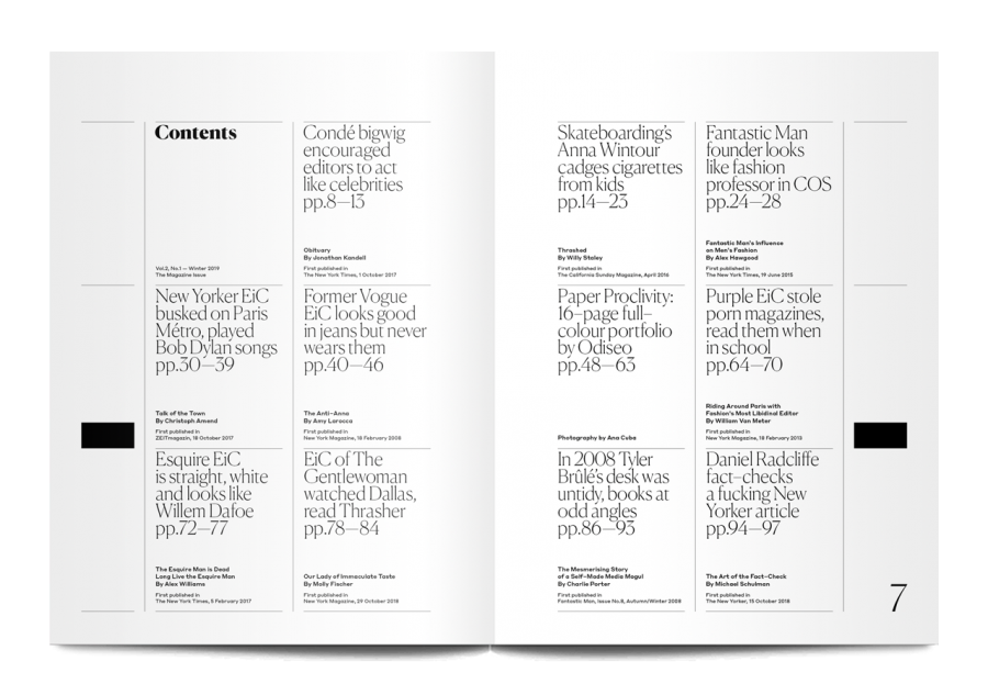Drawing upon brilliant writing from august institutions (The New York Times), indie favourites (Fantastic Man) and international upstarts (The California Sunday Magazine), there’s a wonderful magpie-like quality to the magazine making, with the character of the original pieces shining through in this new setting.