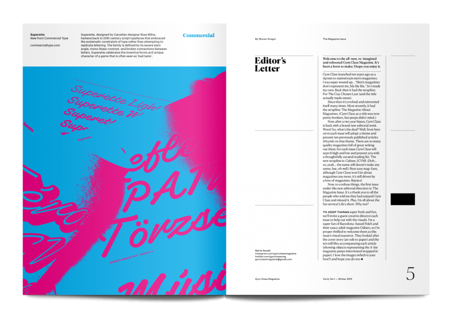 Delivered to Stack subscribers in January 2019, Gym Class has nothing to do with either sports or schools (see page three for editor Steven Gregor’s explanation of where the name originally came from) and instead this latest iteration of his 10-year-old project repackages previously published stories around the theme of magazines.