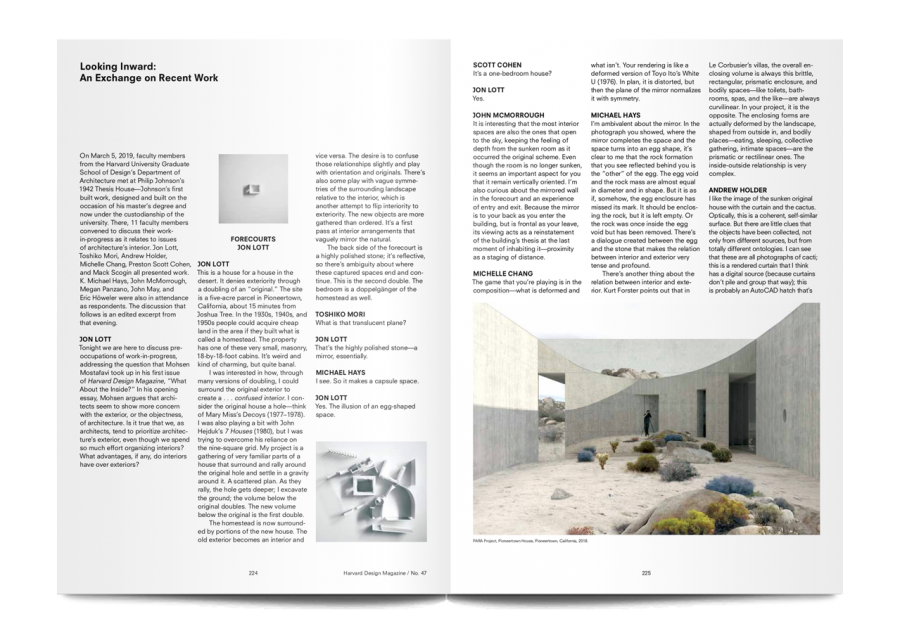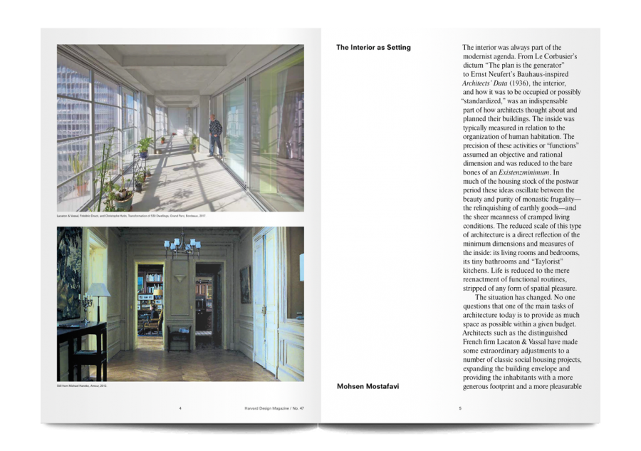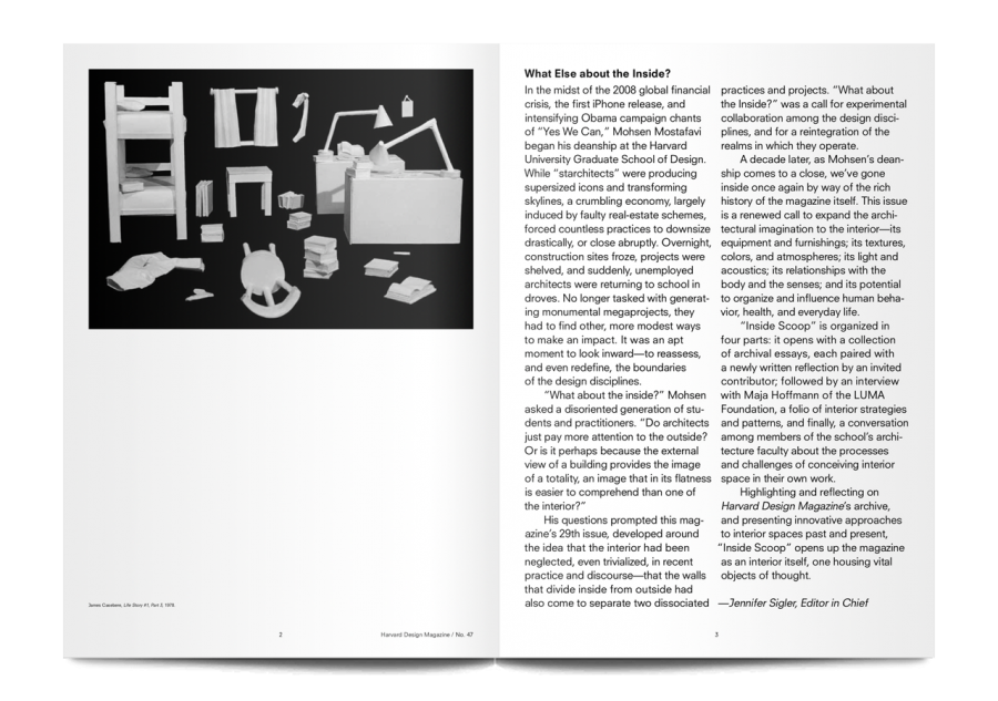 Scholarly, poetic, surprising, and visually lush, each issue of Harvard Design Magazine opens a door onto design’s role in today’s culture. This issue, ‘Inside Scoop’, is “a renewed call to expand the architectural imagination to the interior”, and begins with the provocative question of why do architects care more about exteriors than interiors?