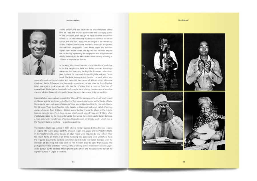 Taking it’s meaning from the yoruba word for “walk” and “journey”, Ìrìn journal explores African culture through travel, people and community. Their first edition explores Africa’s most populous city, Lagos, shining a light on the diverse stories from past and present that make up its unique identity.