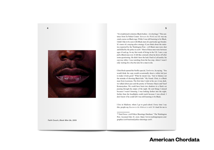 Founded on the belief that a good literary magazine can celebrate sophisticated design and earnest expression on the same page, American Chordata seeks to publish work that is brave, illuminating, and emotionally detailed.