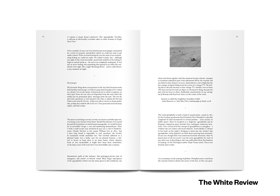 The White Review is a quarterly arts and literature magazine. Providing “a space for a new generation to express itself unconstrained by form, subject or genre”, it publishes fiction, essays, interviews, poetry, and art.
