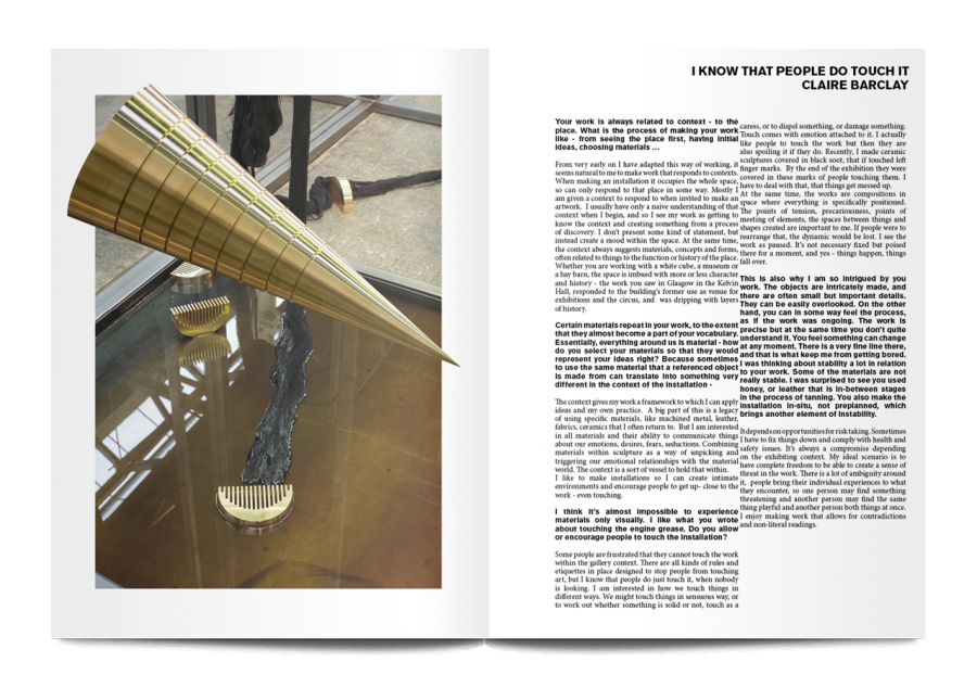- Scottish installation artist Claire Barclay on the joy of unusual materials like engine grease