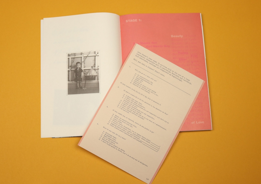 The publication is organised into three chapters mirroring the stages of love: beauty, uncertainty, and letting go. Tactile elements are incorporated, including a hand-torn cover, and an exposed spine. There’s also a roll-out screenplay, a pull-out love letter, an illustrated paper boat, pinned photographs and pressed flowers.