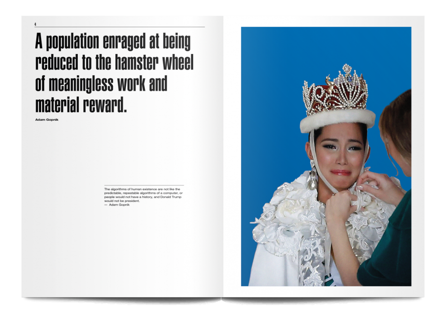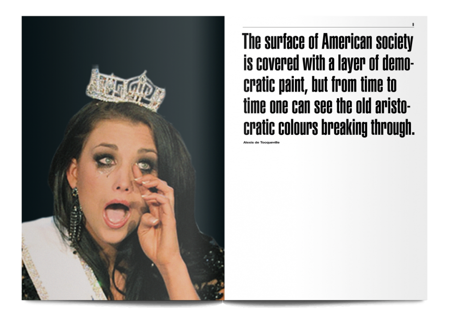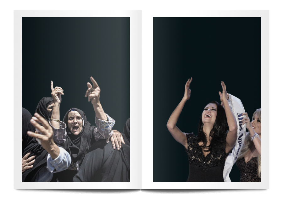 Miss You World juxtaposes images of Miss World contestants crying with apocalyptic quotes from philosophers, and pictures of bombs going off.