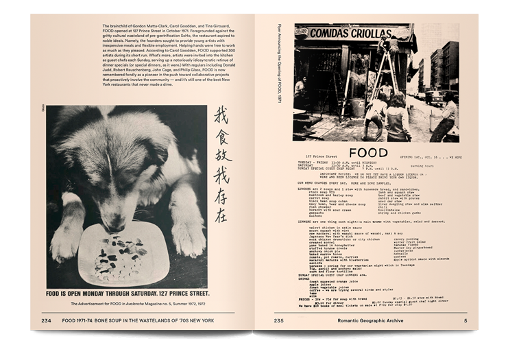 - Gordon Matta-Clark’s legendary bodega-turned-kitchen, FOOD, that emerged in 70s New York from the broken infrastructure of the metropolis, serving alchemical concoctions and cheap sake to the neighbourhoods’ hungry artists