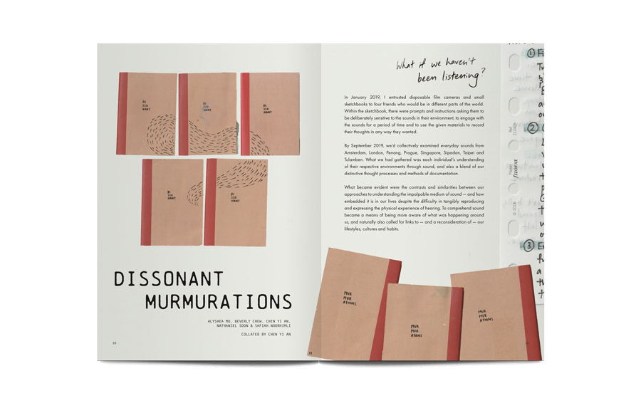 - Five people scattered around the world record their surrounding sounds for nine months, using only a sketchbook and a disposable film camera