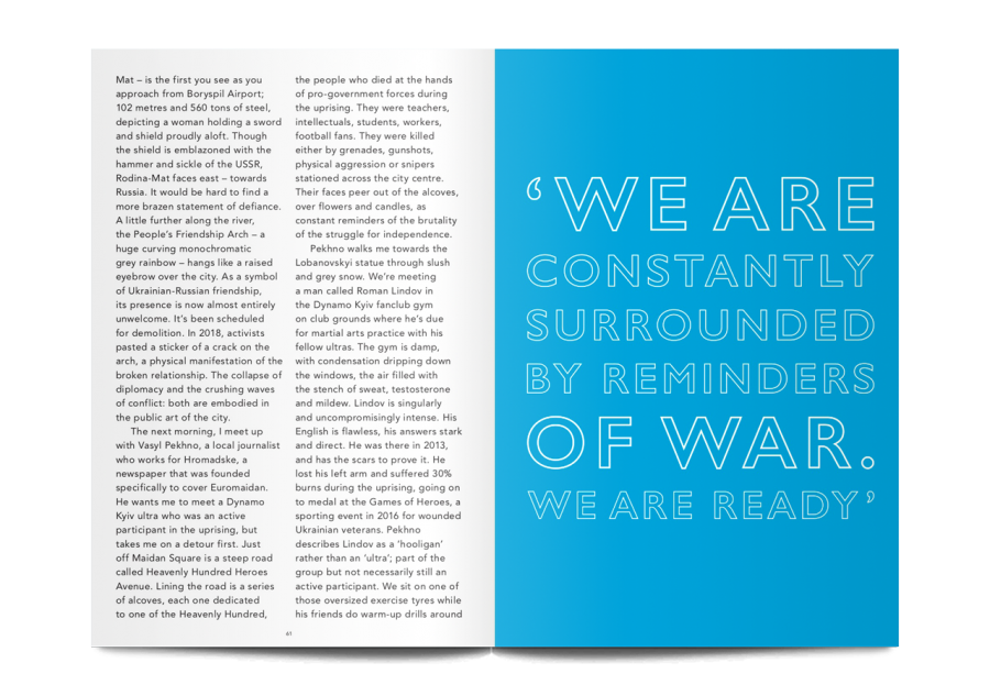Blurring the lines between the two fields, Oof looks at football as a symbol for national obsession, passion and physicality amongst other experiences and emotions, and at art as a way of deconstructing this world by peeling back the layers of meaning. Issue three deals with obsession in its many guises.