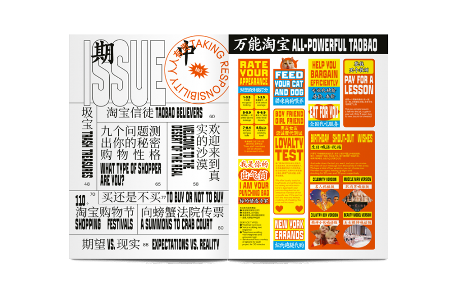 Open Sesame is a magazine devoted to the weird and wonderful world of Taobao, China’s enormous online shopping site. This third issue’s theme is ‘Taking Responsibility’, delving into both the power and peril enabled by online commerce.