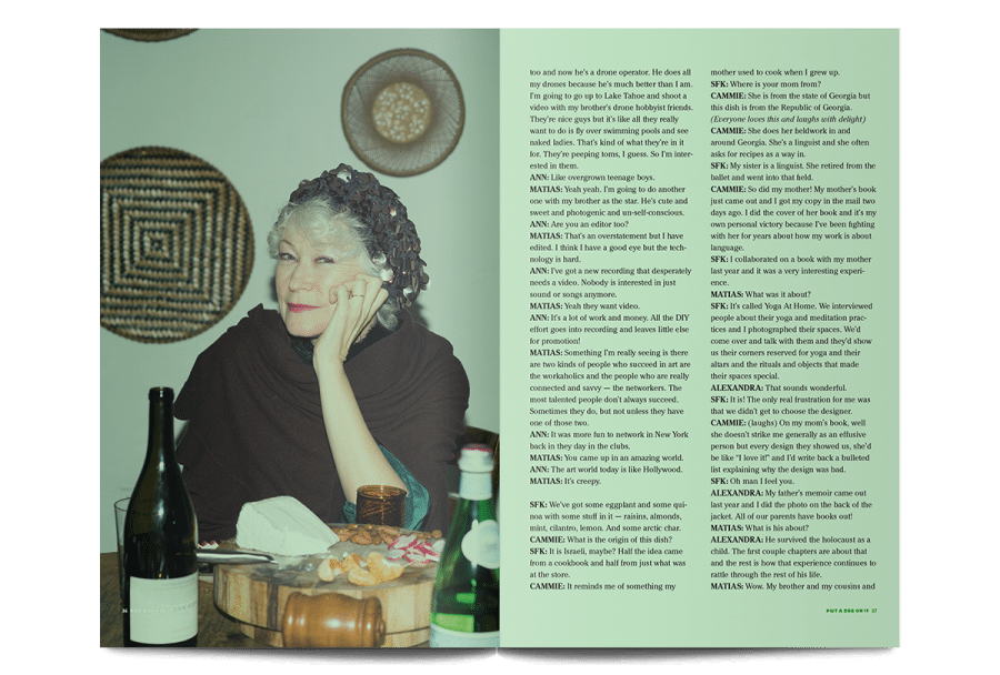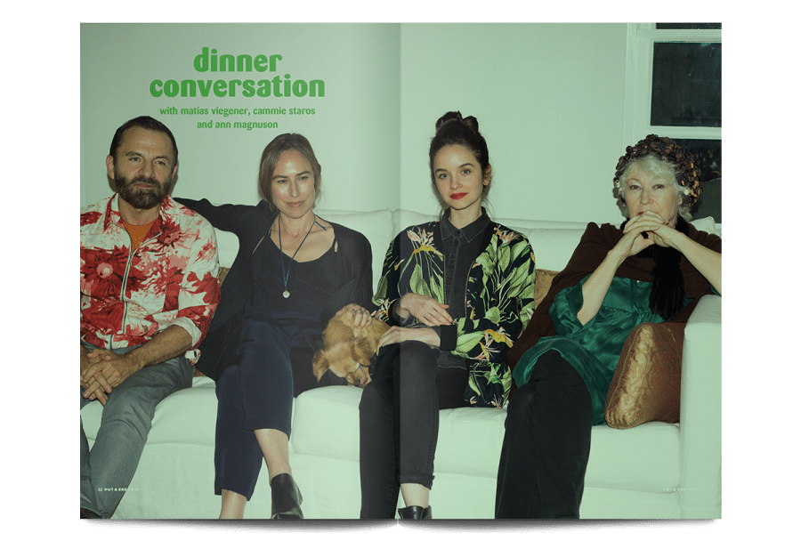 - In Los Angeles, artists Ann Magnuson, Matias Viegener and Cammie Staros dine together discussing art history, pig farming, prep school, art world politics and more