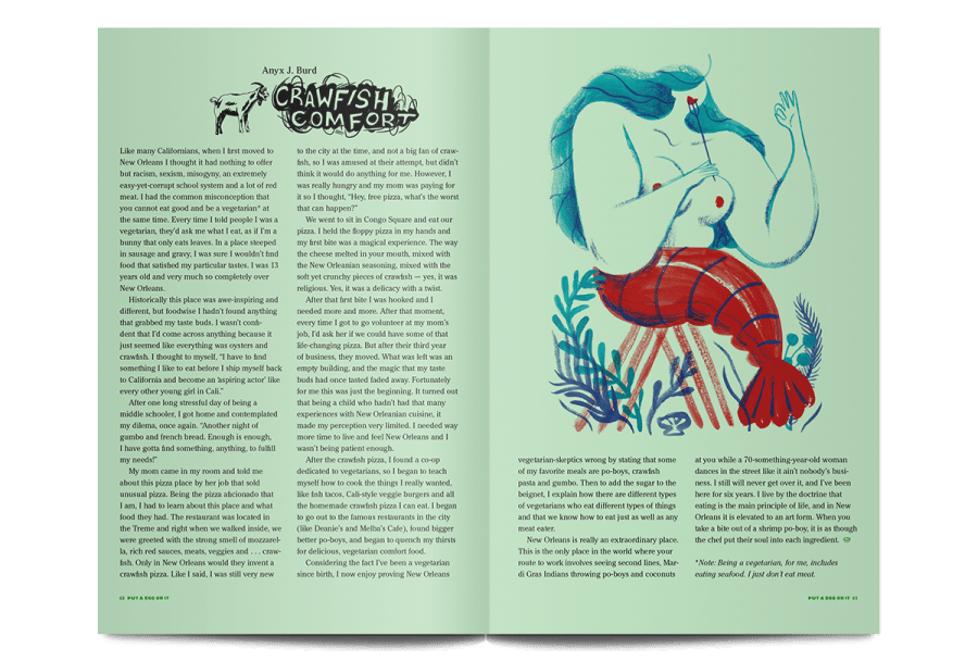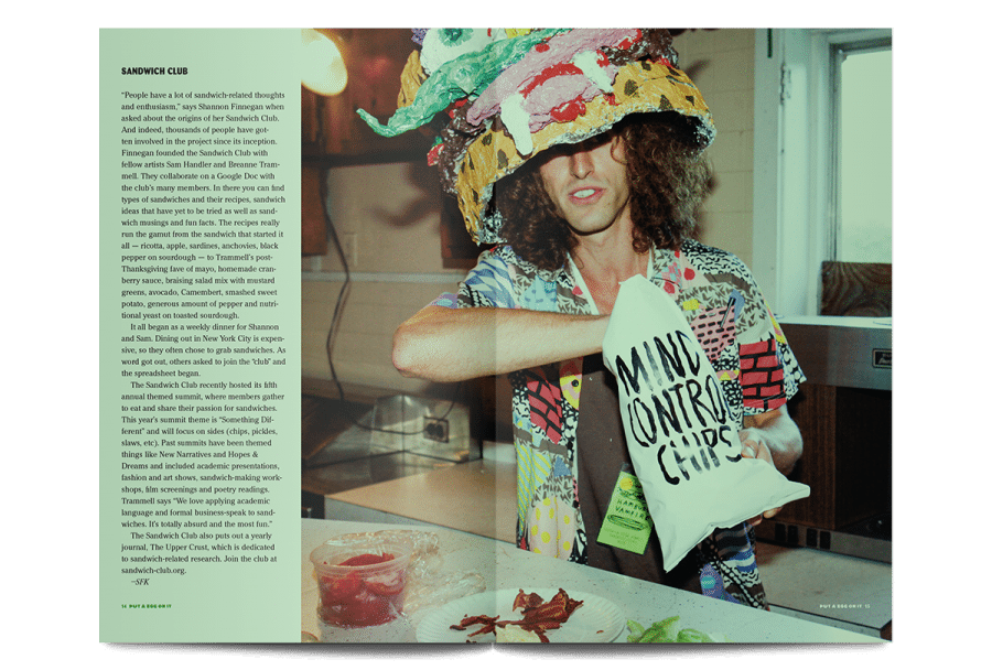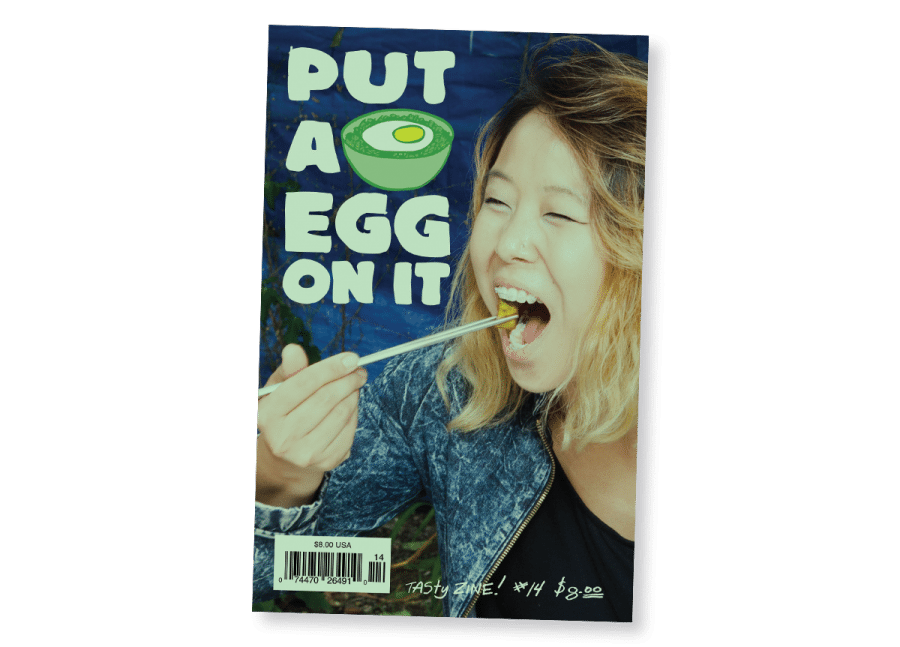 Put A Egg On It is a tasty zine about “food, cooking, and the communal joys of eating with friends and family”. Printed on green paper (a nod to early 90s photocopied zines) it’s an irreverent response to the more aspirational food magazines and their unfeasibly clean food photography.