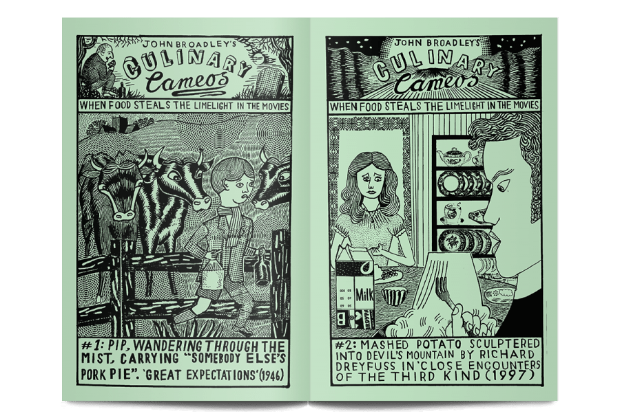 - For his Culinary Cameos, illustrator John Broadley has plucked moments from film history when food has stolen the scene and drawn them like old-fashioned trading cards