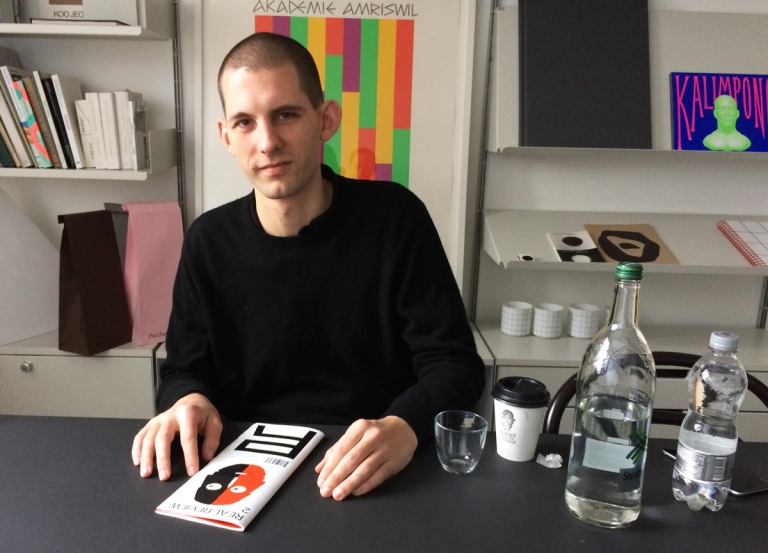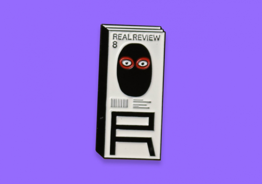 This badge features the cover of Real Review magazine’s eighth issue, illustrated by Nishant Choksi and designed by OK-RM.