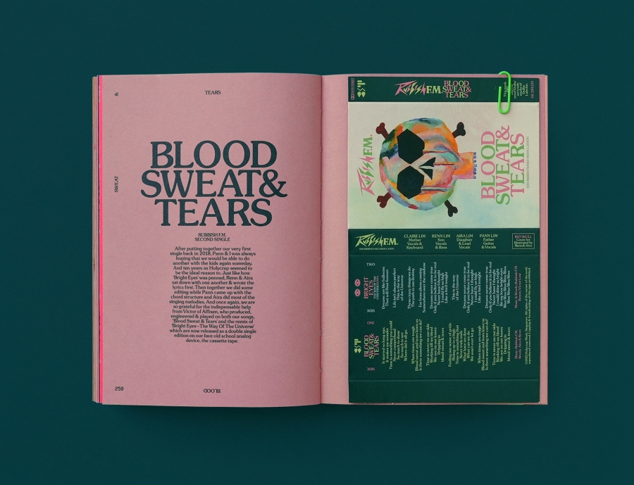 The latest issue is Blood Sweat & Tears, celebrating 10 years of the project so far and indulging in an extraordinary array of print treats and fastidiously hand-finished features. Readers can expect to find a cassette tape with two of the family’s songs; a self-finish cardboard cassette sleeve; QR code stickers leading to the family’s favourite music from the last 10 years; and the whole thing comes hidden inside a fake box of tissues. It’s nuts.