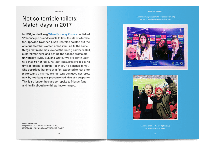This fourth issue was published in late 2017 and it’s themed around money – check the story list below to get a taste of the contents, which tackle issues including the gender pay gap, women who gamble on the game, and fake football shirts…