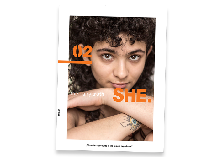 After a first issue dedicated to menstruation, She shifts its focus to the bizarrely taboo subject of female body hair. A clear-eyed and uncompromising piece of feminist print, these ‘shameless accounts of the female experience’ are by turns funny, affecting and outraged.