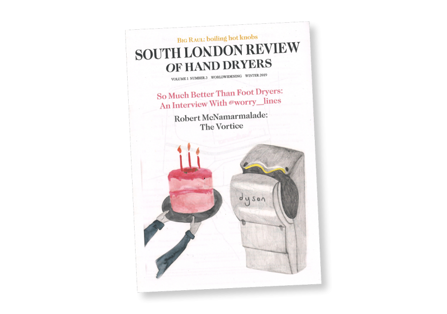 The South London Review of Hand Dryers is simultaneously a fond parody of the London Review of Books, a silly excuse for writing about hand dryers, and a heartfelt experiment in creativity and collaboration.