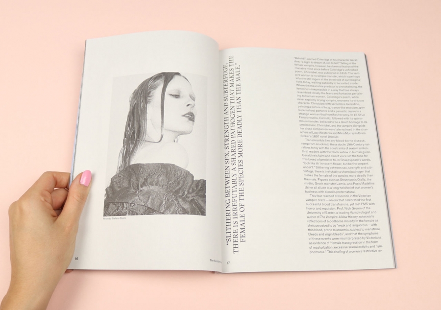 Each issue of Suspira sets out to explore “an archetype of fear and fascination,” dissecting sinister subjects through a feminine lens, taking necessary and surprising approaches to the horror genre. A magazine that doesn’t rely entirely on contemporary references, as beguiling as it is repellent, Suspira is a powerfully and jarringly-designed journey into the grotesque.