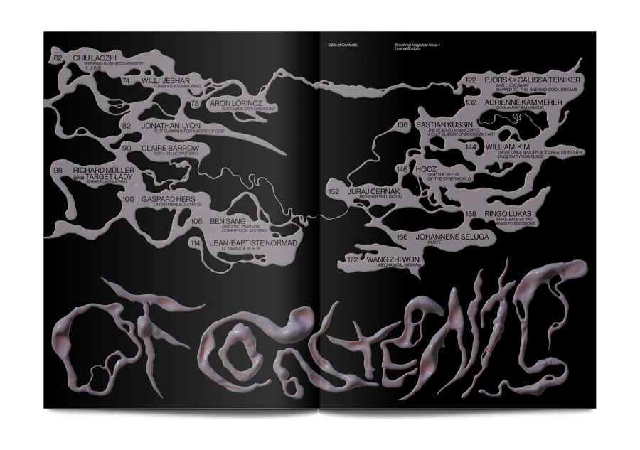 Synchron is an independent magazine that showcases a broad spectrum of contemporary art, literature and subcultural practices. This issue is themed ‘Liminal Bridges’, focusing on mysticism, magic, and individual interpretations of spirituality, all inflected with a dark, sexy undertone.