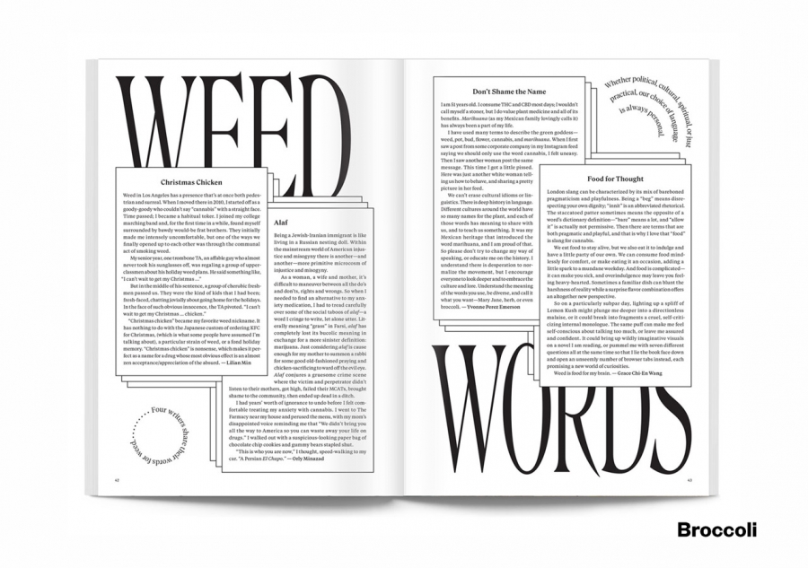 Created by women who love weed, Broccoli is a magazine presenting a new perspective on cannabis culture. Playful, informed, eclectic, and thoughtful, it encourages the discovery and intelligent appreciation of cannabis. This issue includes stories on Jarina De Marco, the musician turning the protest song into the protest bop, the surreal genius of Leonora Carrington and Gilded Lilies: Sophie Parker’s digitally printed florals.