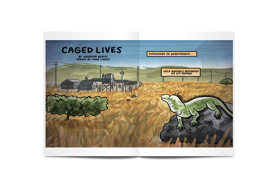 - Lisa Hanawalt illustrates a story of the former Guantanamo Bay detainee Mansoor Adayfi recounting the wild animals he met while imprisoned by the United States