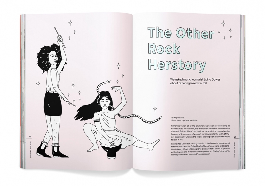 Tom Tom Mag is dedicated to female drummers and beat makers. With this ‘Politics’ issue, the editors “wanted to showcase musicians who are doing something to create a better, more inclusive world.”
