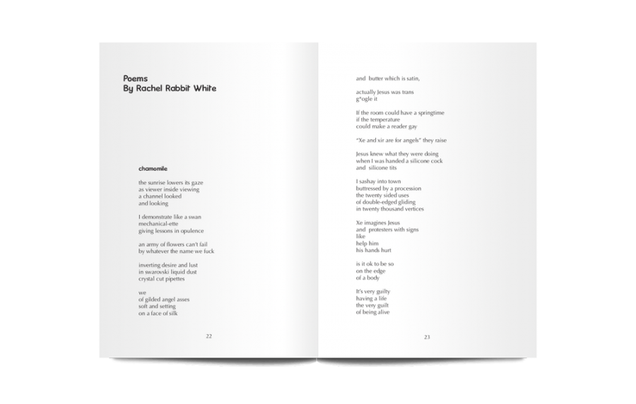 - Poems by Diamond Stingily, Dean Kissick, Iris Fraser-Gudrunas, Tamara Faith Berger, Rachel Rabbit White, Steven Phillips-Horst, Precious Okoyomon, Natasha Stagg