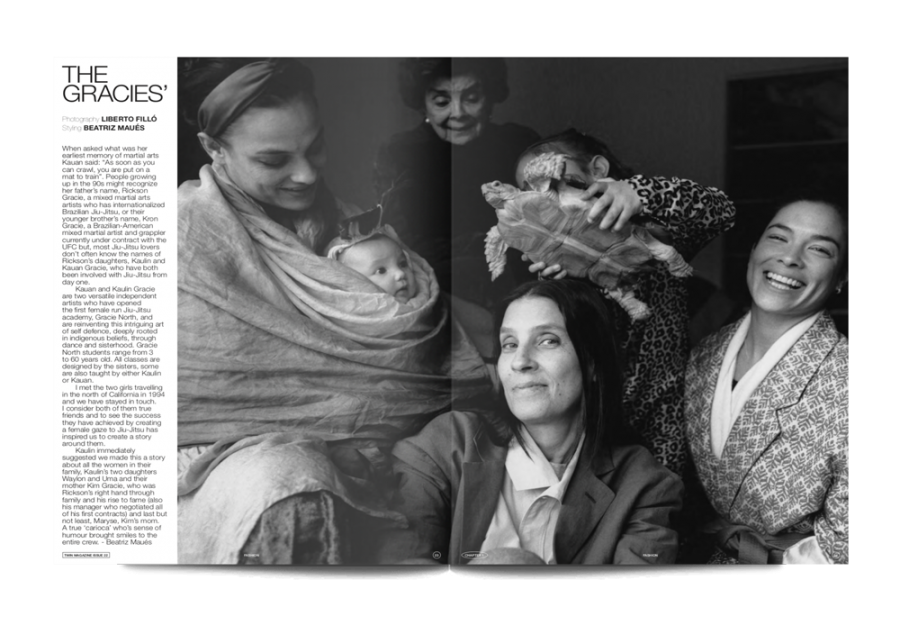 Twin is a biannual art and fashion magazine – a big, beautiful, hardback publication that uses its large format pages to showcase a wide range of work. Jiu-Jitsu sisters The Gracies set the scene for issue 22, in which focus, determination and individual spirit recur throughout the features.
