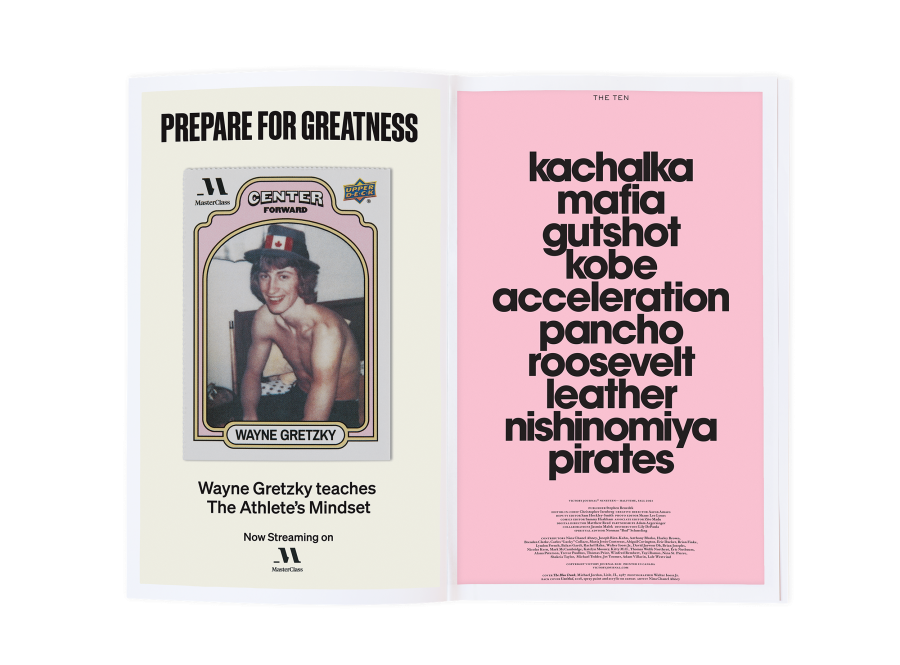 This issue, Halftime, explores sporting and artistic expression at a moment of intense pressure and promise.