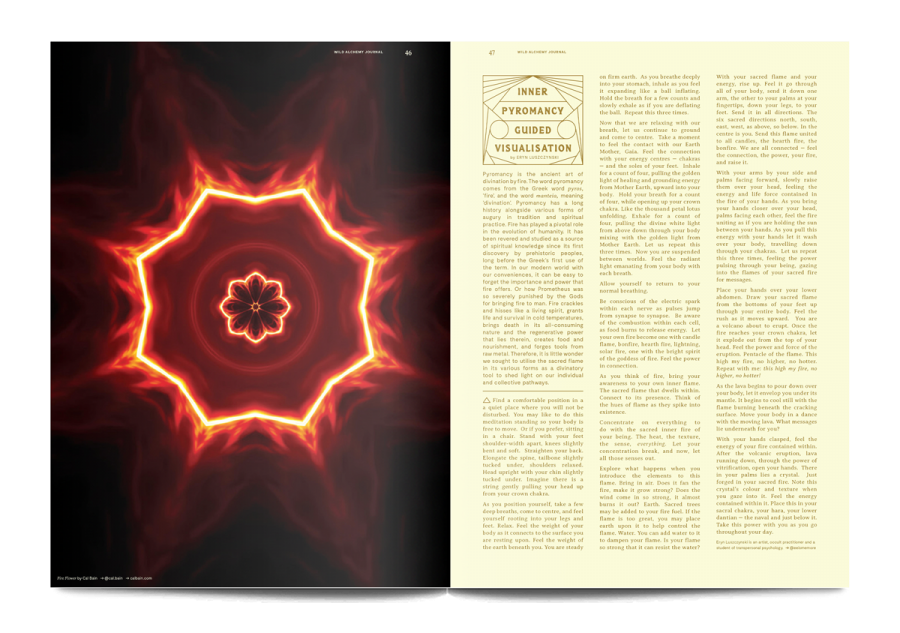 Wild Alchemy Journal is a printed collection of art, text, and smell devoted to the elements: earth, fire, water, air and aether. Issue two is the ‘Fire’ edition.