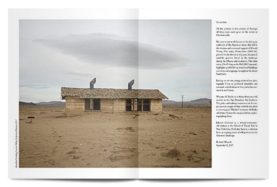 Published by Francis Ford Coppola and based in San Francisco, each issue of Zoetrope: All-Story combines a collection of outstanding short stories with artwork by a guest art director. Photographer Richard Misrach took charge of the art for this issue, which we delivered to Stack subscribers in November 2017, and in his notes at the start of the magazine he explains that his desolate pictures focus on “the dystopian underside of the American dream that led to the election and continued support of Donald Trump.”