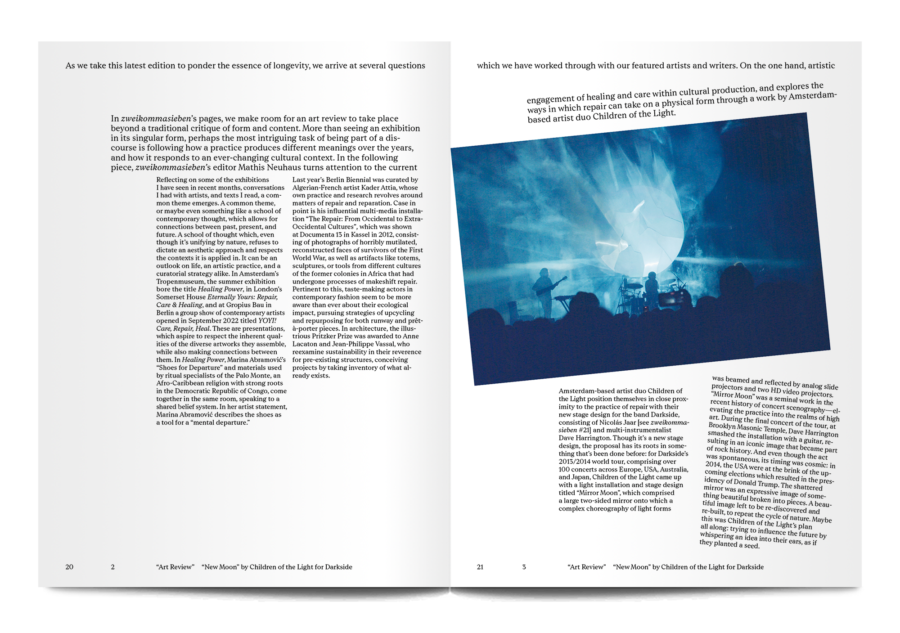 A contemporary music magazine based in Lucerne, Zweikommasieben is as experimental and exciting as the artists it reports on. Each issue takes a completely different format, and for the 27th instalment, they play around with elongating their texts, taking the reader on a strange and disorienting journey through this moment in music.