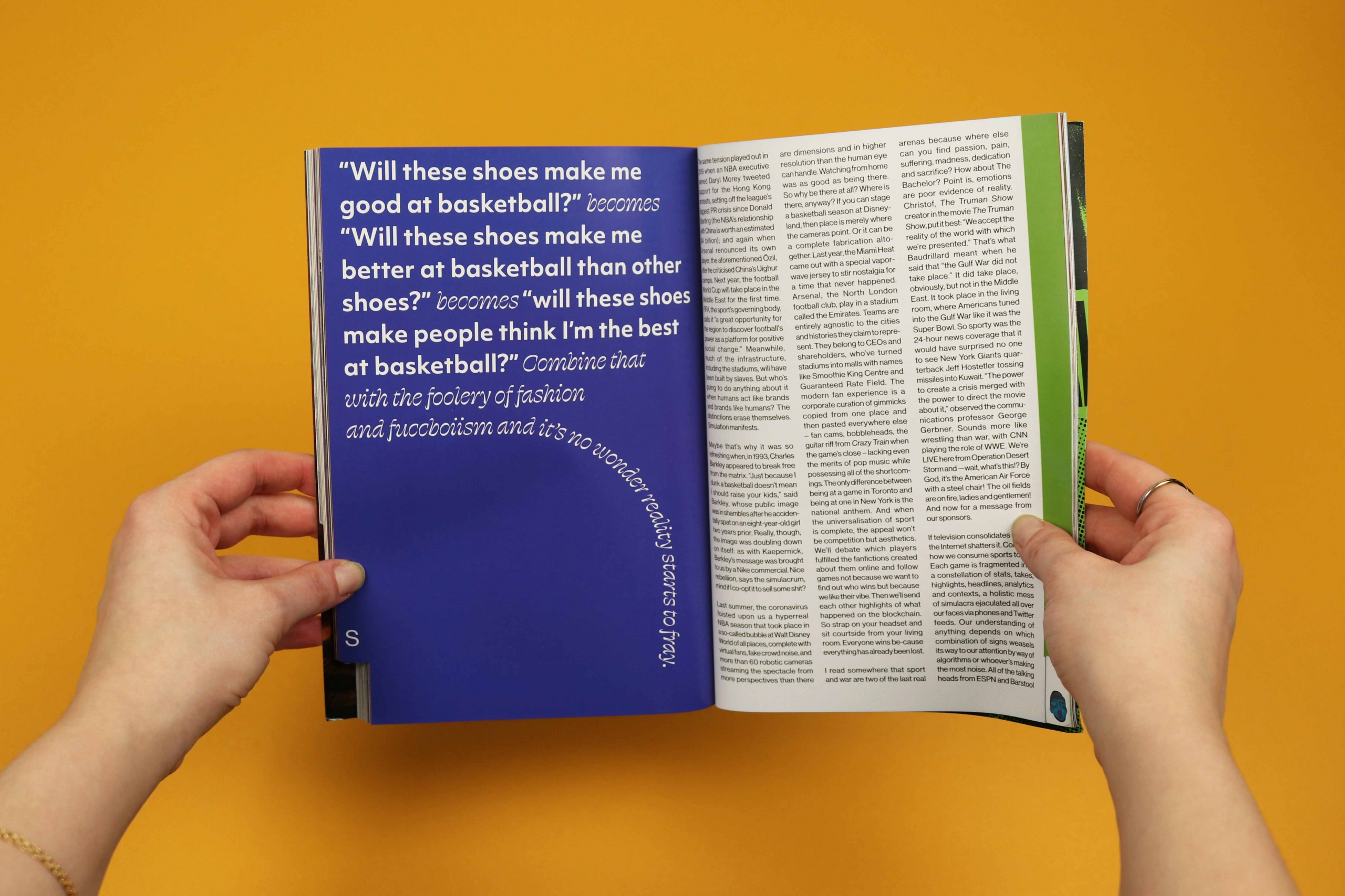 Right at the front of the magazine, just before the contents page, Good Sport’s editors discuss the process of making this issue, and in that conversation they talk about the alphabetical structure providing, “a new framework”, that allowed for, “both intention and spontaneity”, constructed, “around a central theme of communication”. I think that’s what makes this magazine so intriguing; its stories are about sport, but they’re also about communities and individuals coming together in different ways, the odd alphabetical order providing a novel way of flicking through the magazine, and also directly informing the stories that are told.