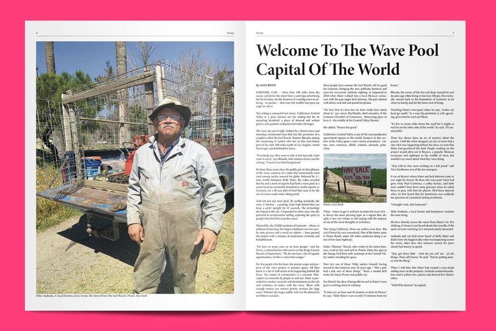 Our purpose here is to expand the image of what or who a surfer is — and by extension what a surfing magazine can be. The sport belongs as much to the beginner as it does to the pro. Yet the sport has not done well at providing aspiring surfers with acceptance. I want Twenty to be the place those people can turn to for honour, community and respect. These are people not interested in maintaining secrecy about key surfing spots or manoeuvres. Instead, they want to learn how to pop up on a board correctly and perform basic moves and get stronger in the water. They want to learn how to read waves correctly, how to stay safe and how to find spots that are appropriate for their abilities.