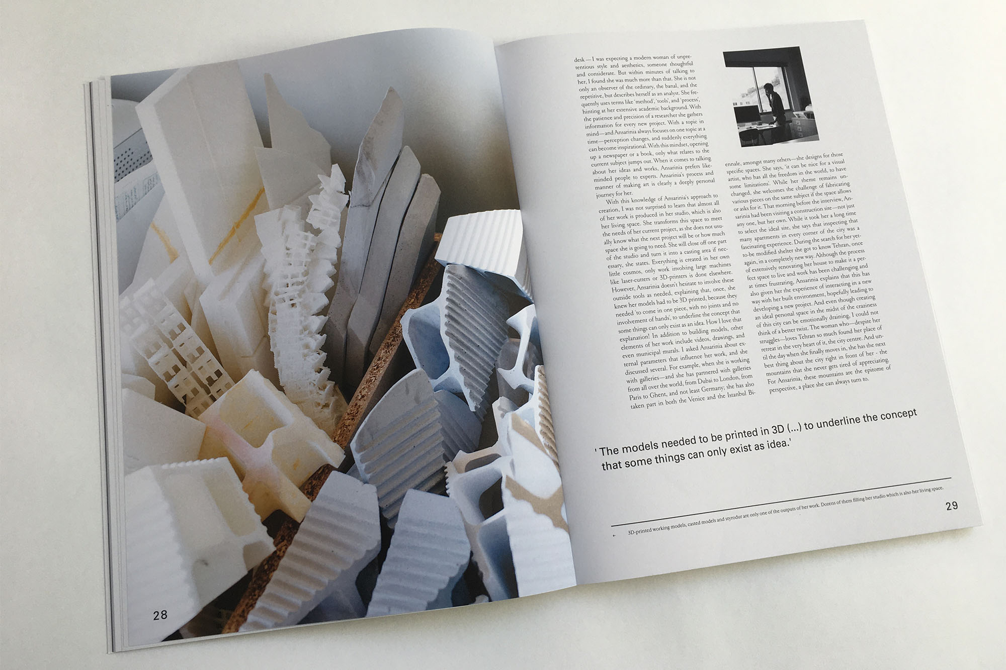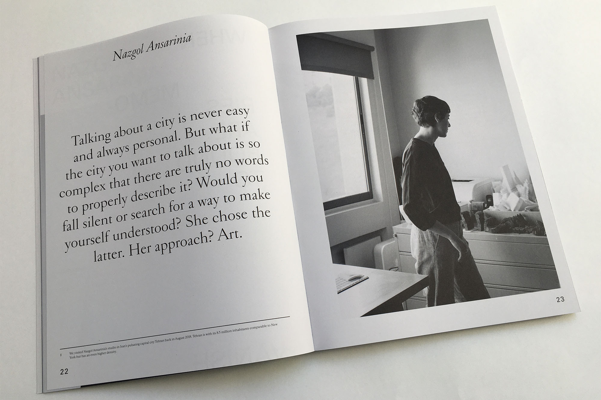“On the one hand, Ansarinia sees Tehran as the beautiful place where she grew up, which she calls her home, full of trees and mountains up north. On the other hand it is a big, noisy, polluted city, bulldozing over itself… with every breakneck construction comes demolition.”