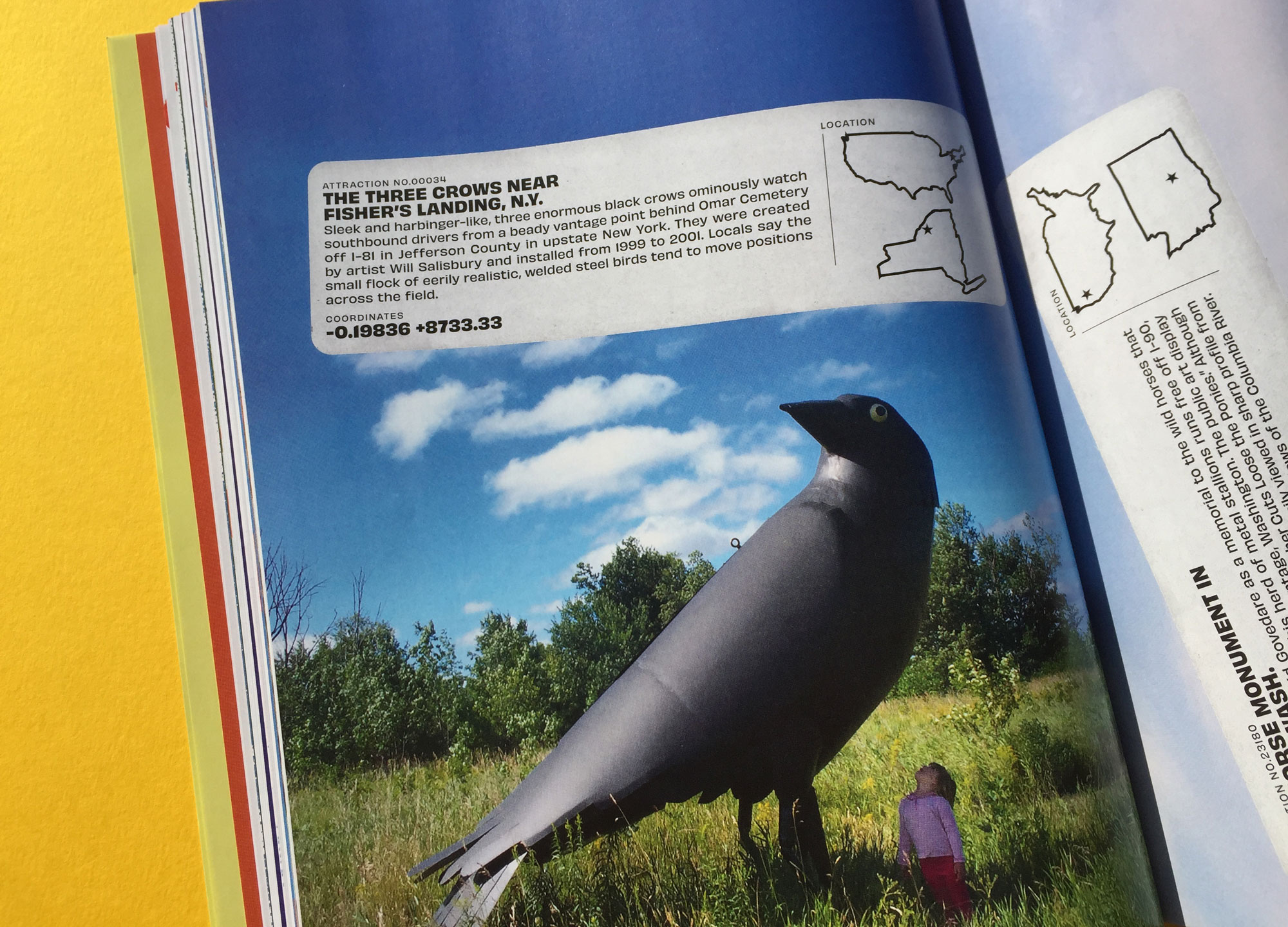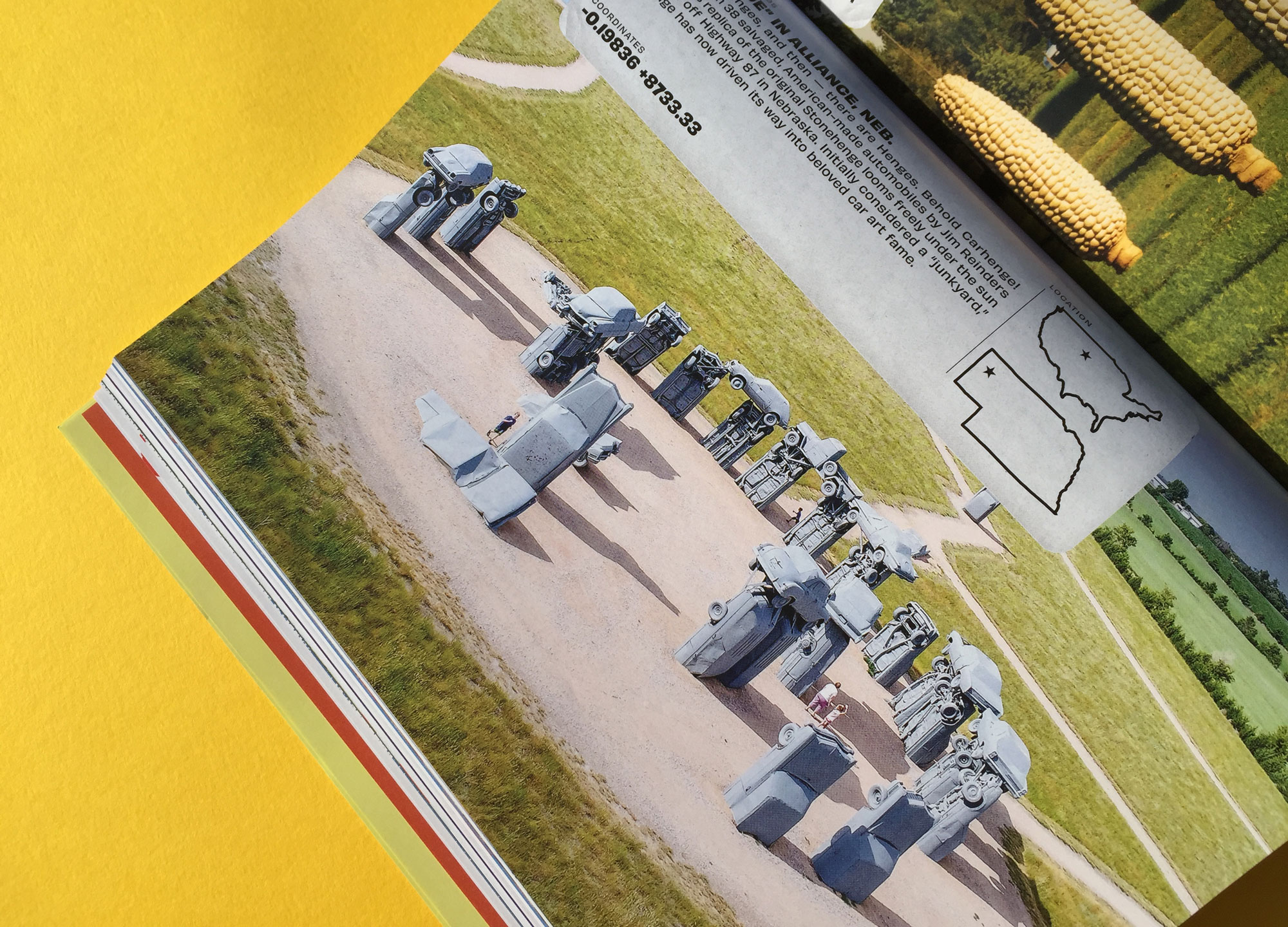 “How do you begin a fresh exploration of the United States in 2020?”, asks Fifty Grande’s editor, Chris M. Walsh. One way is to devote 10 full colour pages of your biannual US-travel magazine to the fabulously bad art to be found on America’s highways. Key landmarks include three enormous black crows that stare down drivers in upstate New York, and ‘Carhenge’ — literally cars in the shape of Stonehenge, off Highway 87 in Nebraska.