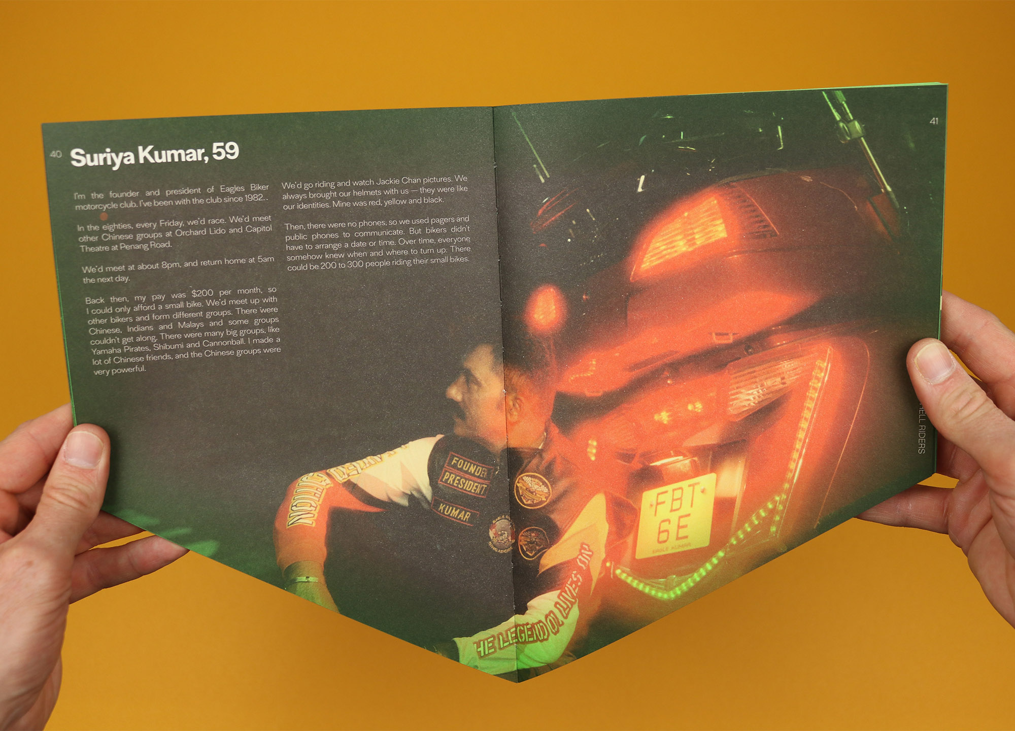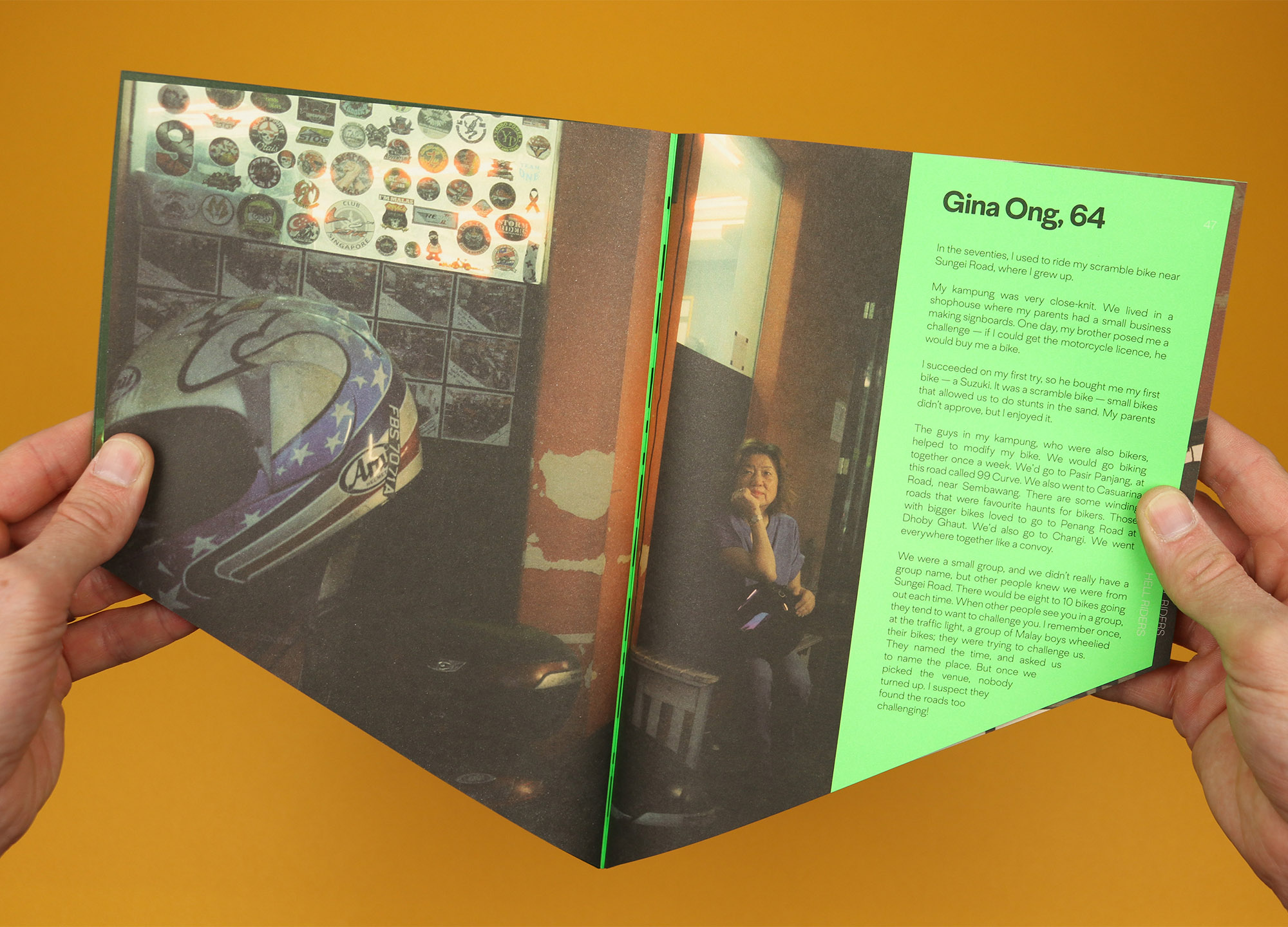 Similarly, the section on Envy tells the stories of “hell riders”; members of the motorcycle groups who dominated Singapore’s streets in the 1980s. But of course those riders are comfortably middle aged now and they stopped doing battle with the police decades ago – not only that, but their recollections are characterised by the camaraderie of friends riding bikes together, and the opportunities they found to raise money for charity and use their bikes for social good.