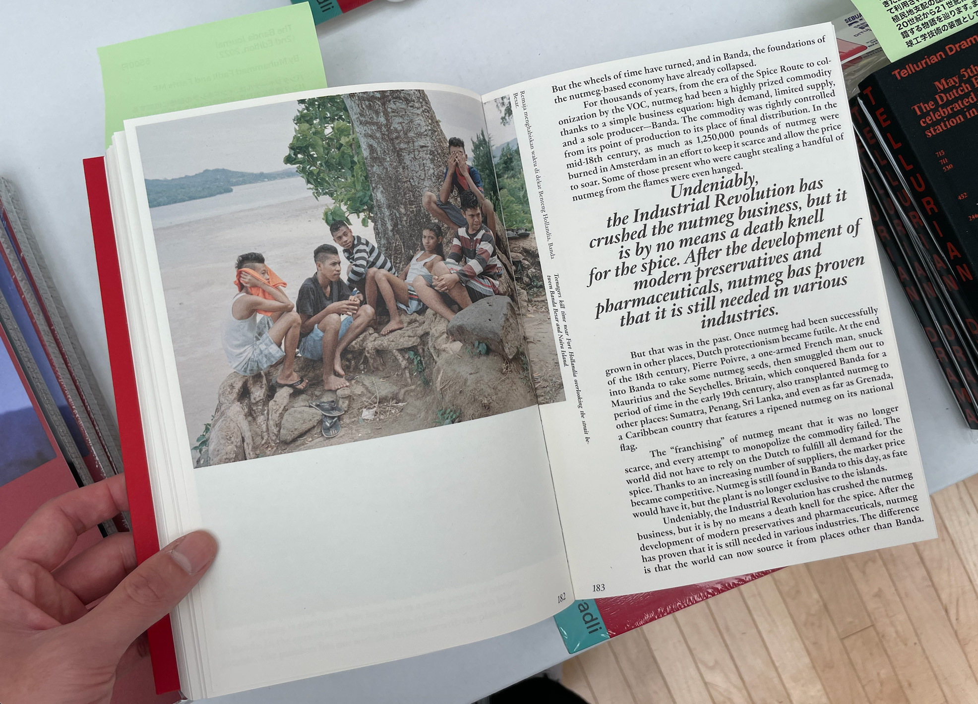 There weren’t any magazines on their table, but I couldn’t resist introducing Jordan, jordan Édition, an independent publisher based in Jakarta, Indonesia. Founded by editorial designer Jordan Marzuki, the publisher tells Indonesian stories tucked away from society in the form of art books by collaborating with Indonesian artists. For example, The Banda Journal highlights the legacy of centuries-long colonisation and exploitation in the remote Indonesian Banda Islands. Through beautiful photography and the testimonies of local people, it tells the tragic history of the spice race and the current situation of Banda, which was once the world’s only source of nutmeg.